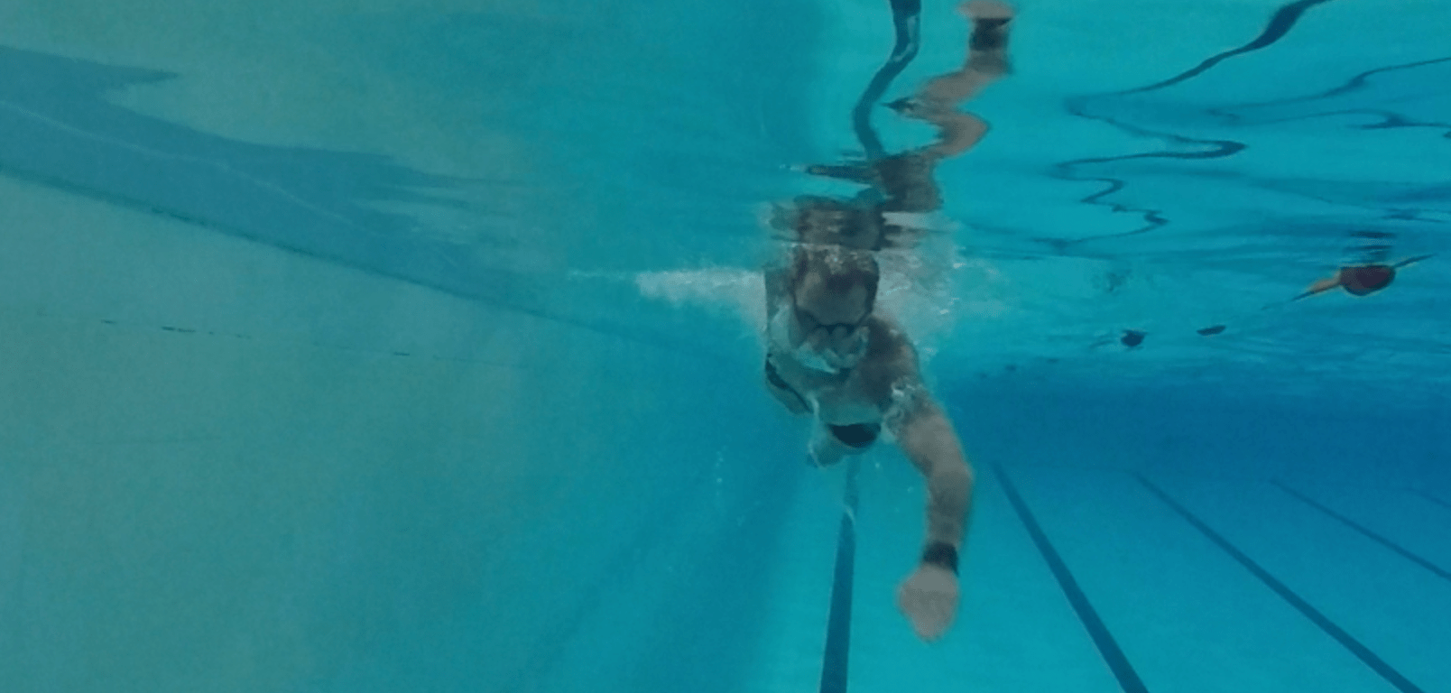 Areas to improve on are mainly, I do not pull through using the full stroke, at the moment I am using around 30% – 40% of my potential power during the pull. Obvious benefits from building on that are a faster more efficient stroke. I need to keep my hand flat and facing backwards throughout the stroke as well as a higher elbow. My left arm crosses the centre line as seen in the second photo below and also waves in an S shape during the pull.