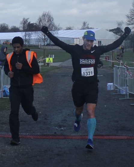 The first mile felt good, I was worried that the cold may affect my breathing but it seemed ok. This portion of the course was sheltered from the wind. Halfway around the first mile I was probably down in 20th place despite looking at my watch and seeing I had gone off at 5:25 pace but I quickly started to pick people off over the next half mile getting up into 6th as we headed out to the out and back.