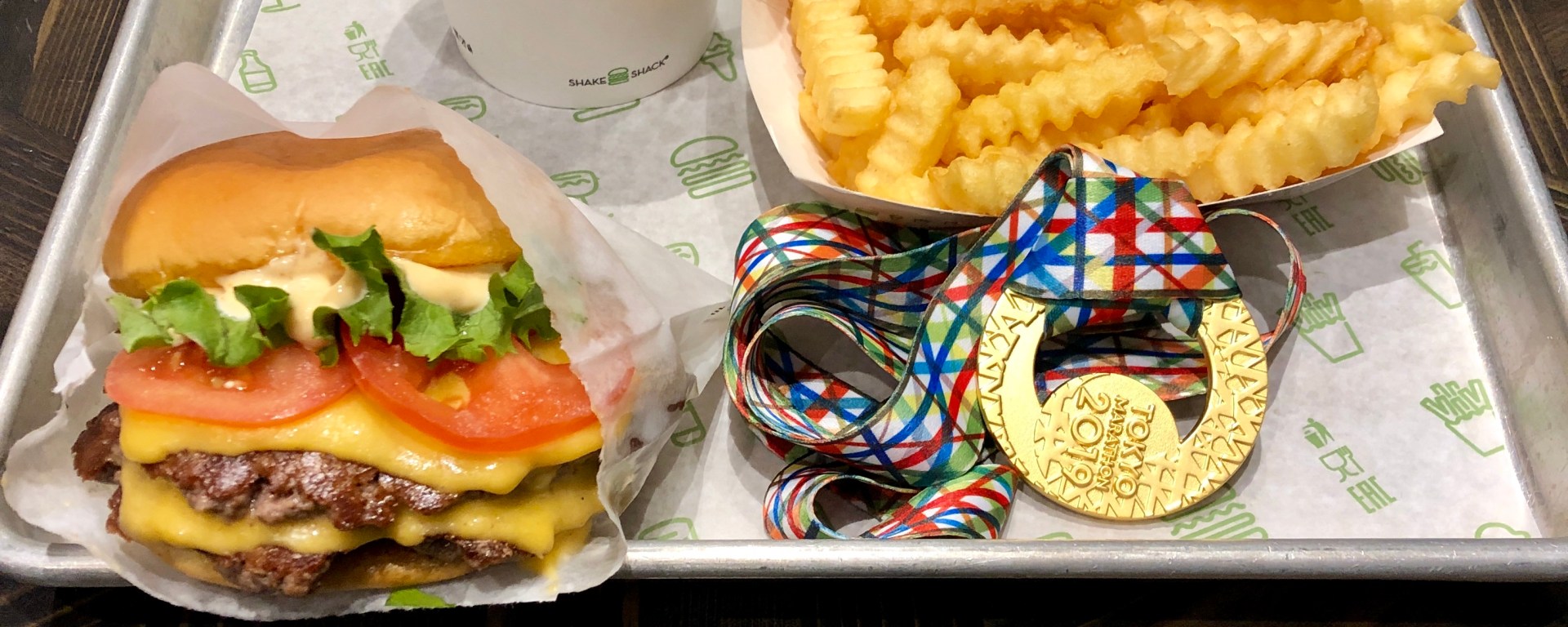 I was starving after only eating two small pots of ready mix porridge at 6am and Electrolyte gels during the run. I wanted something quick, dirty & easy and yes I mean food not a trip to Kabukicho. So it was off to Shake Shack for the third time, but to be fair it is a post-marathon tradition now.