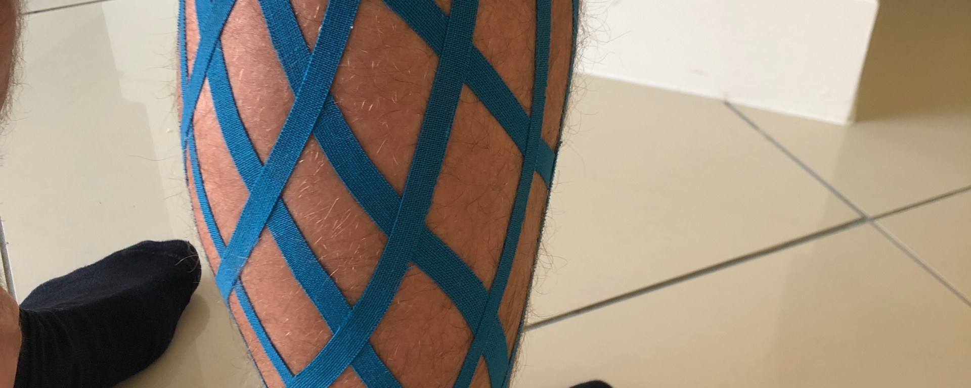 The physio decided to apply some tape to the calf, lifting the skin which would then help the swelling dissipate.