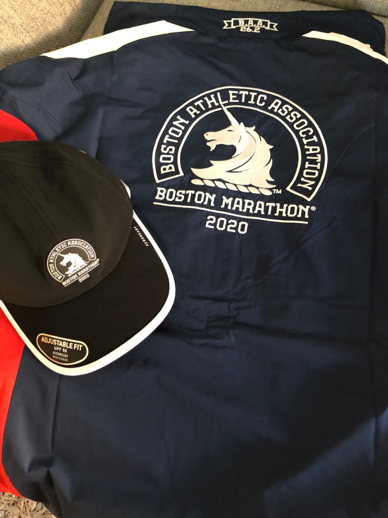 To motivate myself, I ordered the Boston Marathon jacket and cap.