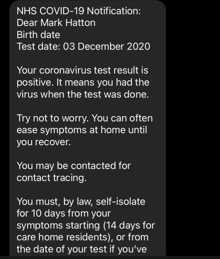 After having two bouts of appendicitis in April and June causing a total of 6 weeks out and then tendinitis in my knee from October – now causing at least 12 weeks out, catching COVID just tops this year off. One positive I guess, catching it whilst out injured means I am not missing any further weeks. Missing 18 weeks was certainly not on the plan for 2020.