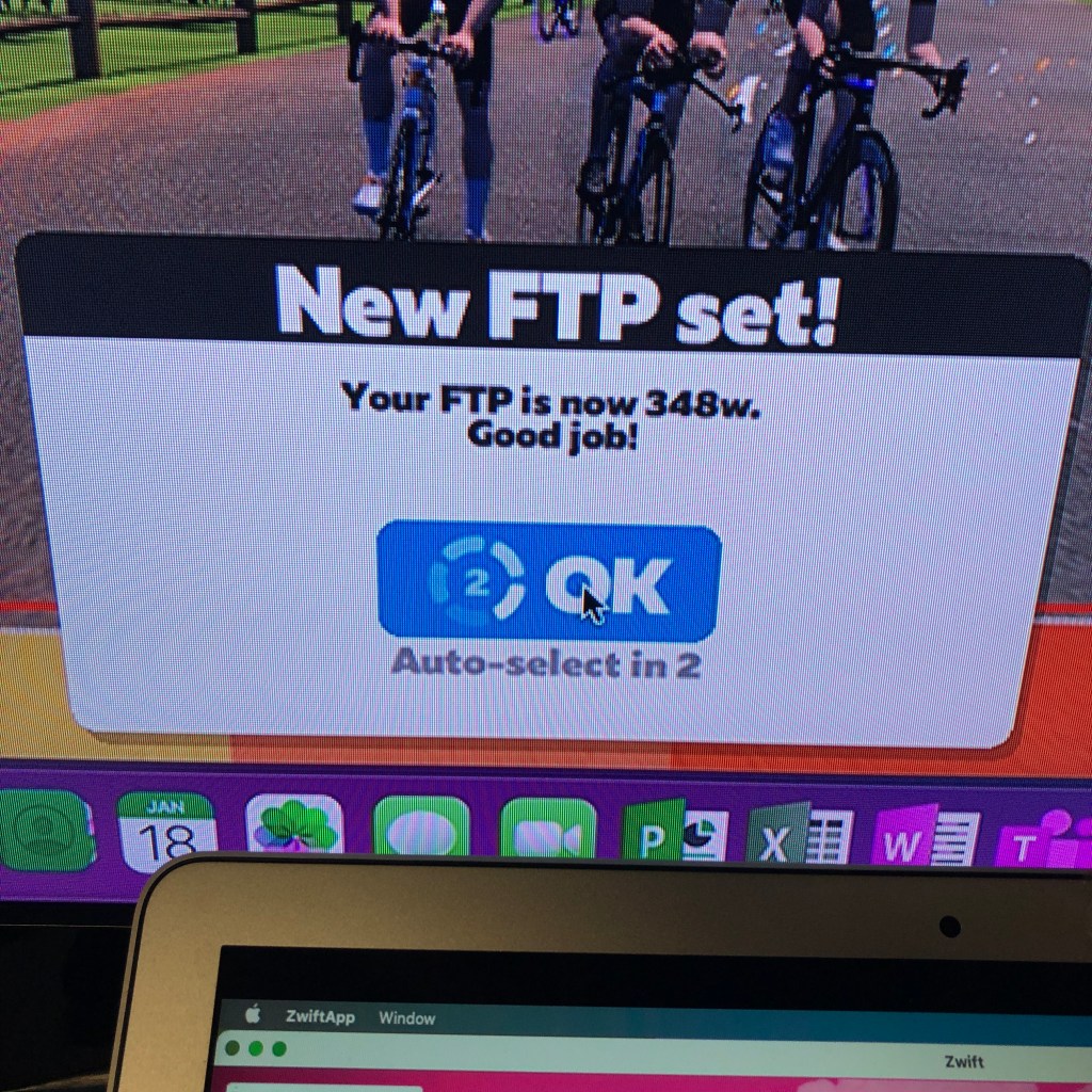 The test went well, I did a 10 min warm up ride before starting the official Ramp Test. The test starts with a 5 min warm up then ramps up by 20w every 60secs, beginning at 100w until you can no longer peddle. Zwift then calculates 75% of your best minute (the last minute) as your FTP. It isn’t as accurate as a 20min FTP test but I felt it would be a good measure against the Ramp Test 12 months ago and it’s only to set a baseline.