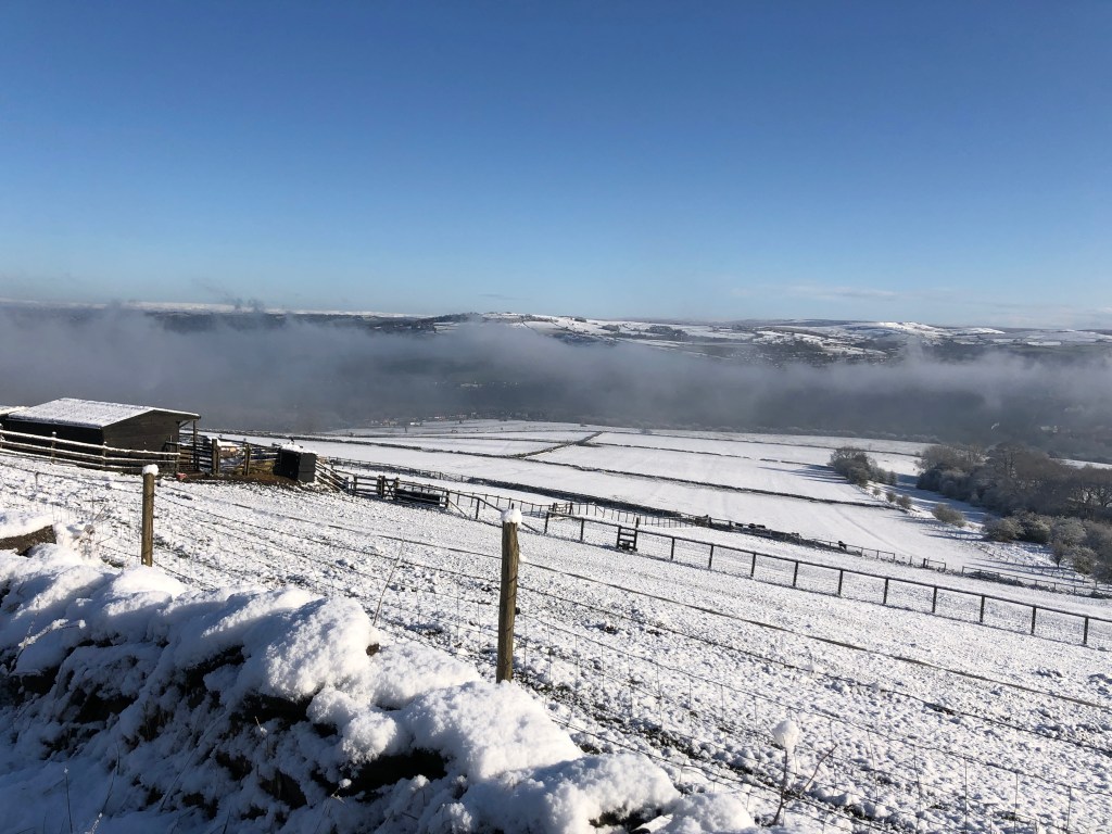 The first 25 miles felt like a rollercoaster, up, down, up, down…. through the hills. As soon as we got out of Stockport we got above the cloud/mist and headed into snow-covered moors which made for some stunning views.