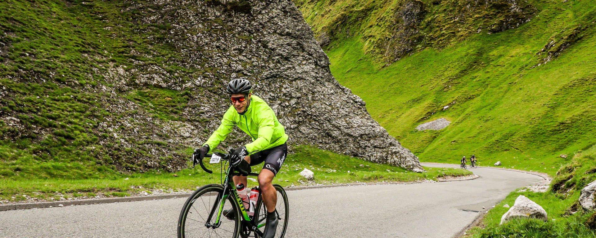 The first major climb today was Winnats Pass, this is just over 1 mile long and averages around 11% with parts ramping up towards 20% as you get near to the top. I had been worrying about the steepness of this climb as my Giant Propel Adv 1 (2018) only has an 11-28 cassette on, making these steep climbs harder on the legs. You just have to muscle through it but with this climb coming just 14 miles into the ride I was sure I could make it up.