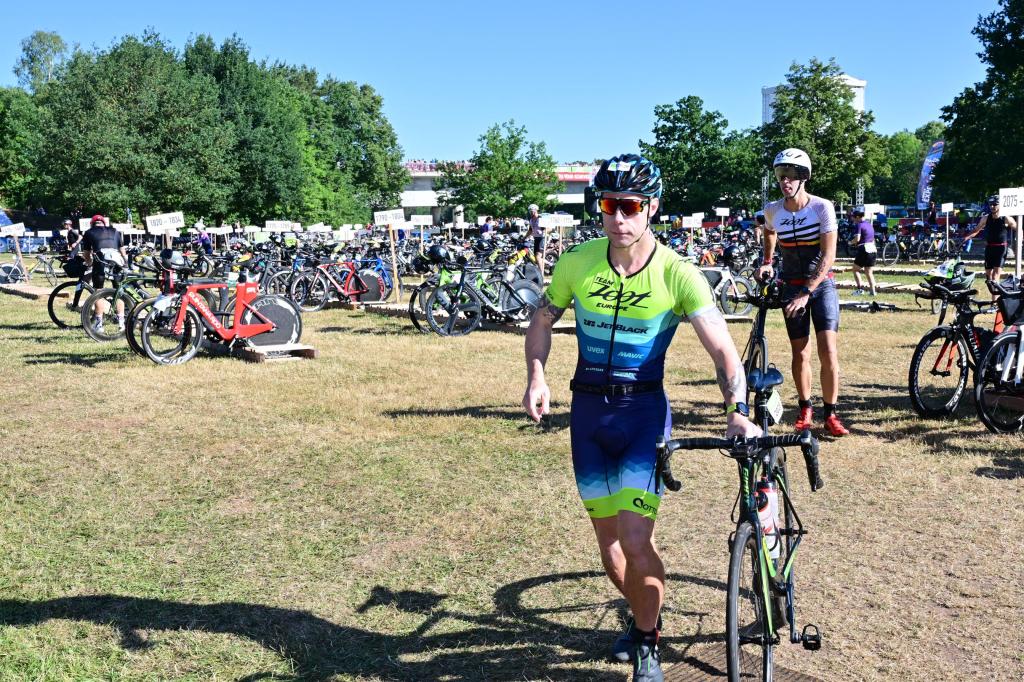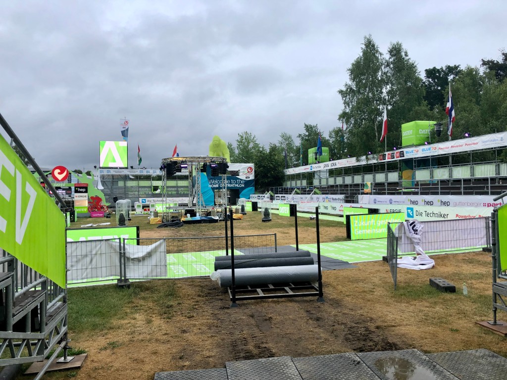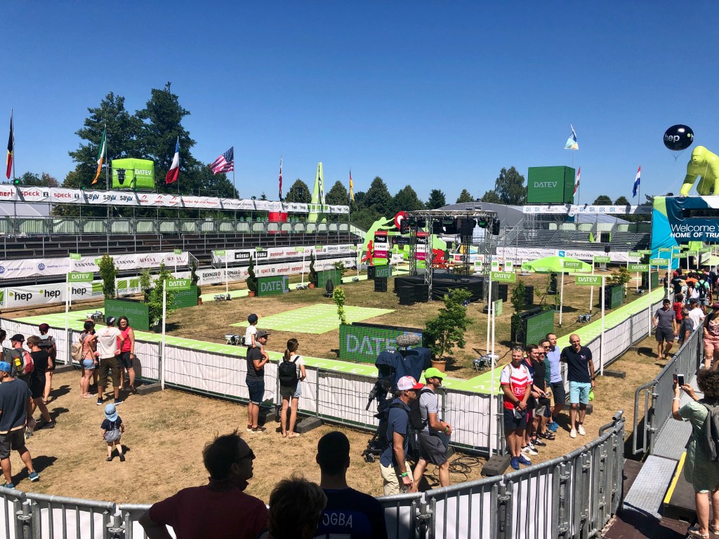 Once racked up, I headed back into Roth for the race briefing in the stadium. It is around a 20min drive from the swim start to Roth.