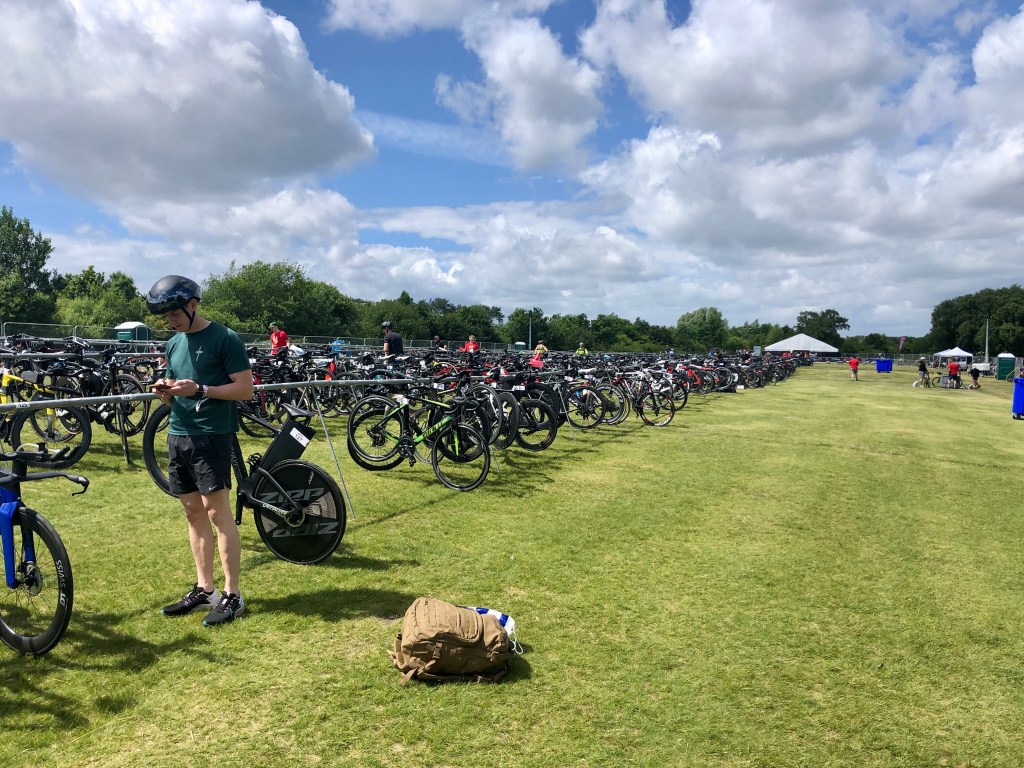 As with T2, I have a walk-through to get familiar with the route from the swim exit to the transition tent and through to the bike, but there is time to do this on race morning too. As it was sunny and fairly warm I let some air out of my tyres to avoid any issues with the popping during the afternoon sun. There are always lots of track pumps available in transition on race morning so no need to stress over that.