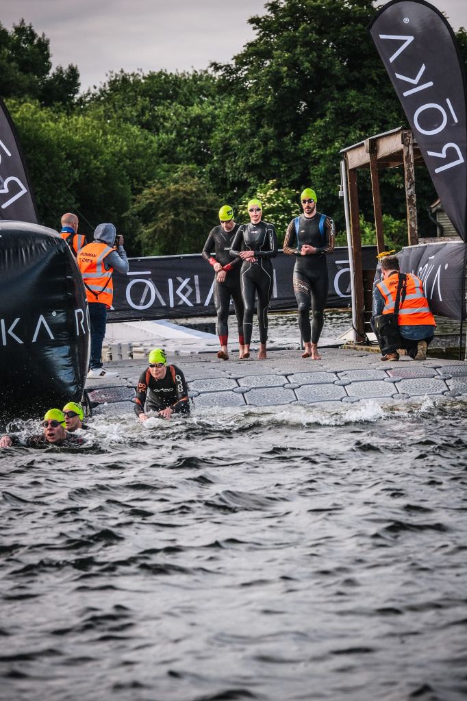 Got to say, it was nice putting the wetsuit on to warm up a little. I was feeling quite nervous about this swim, I have struggled quite a lot over the winter with cooler weather and the water didn’t look very warm at all. It was quite breezy as well which was creating a chop, it looked like it would be blowing in our face for the long straight before turning to the swim exit.