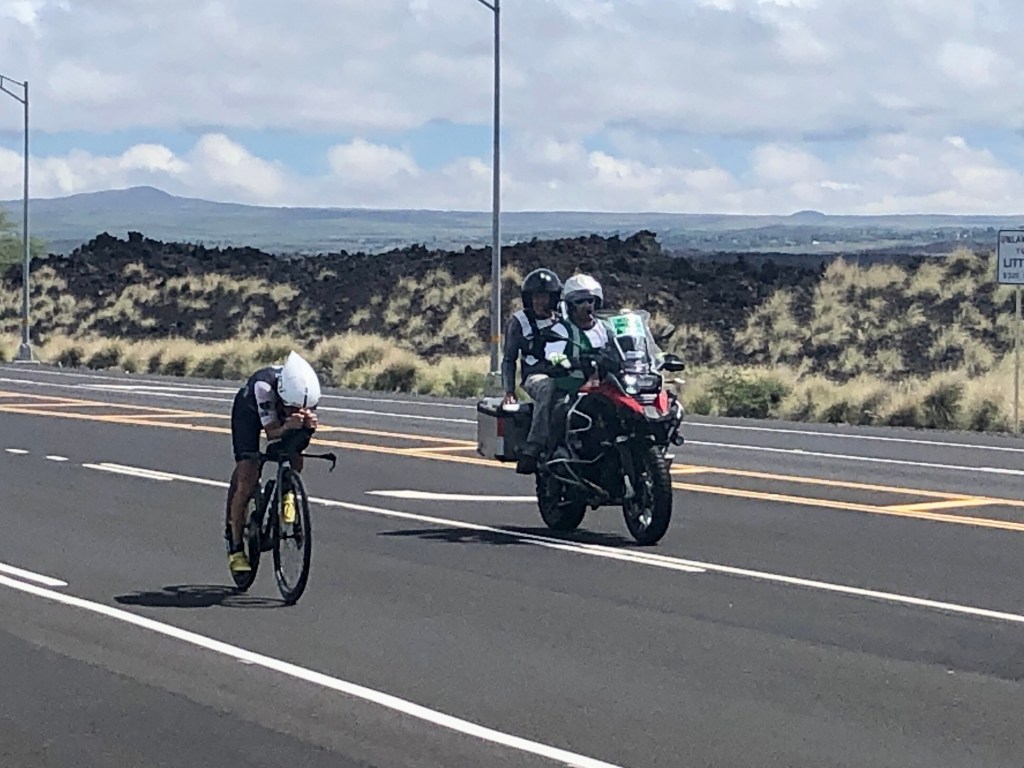 Having said I was going to stay put and not go into Kona to watch the race, I decided to walk down to the end of our road and watch the bikes coming passed. I ended up staying out there for 2 hours.