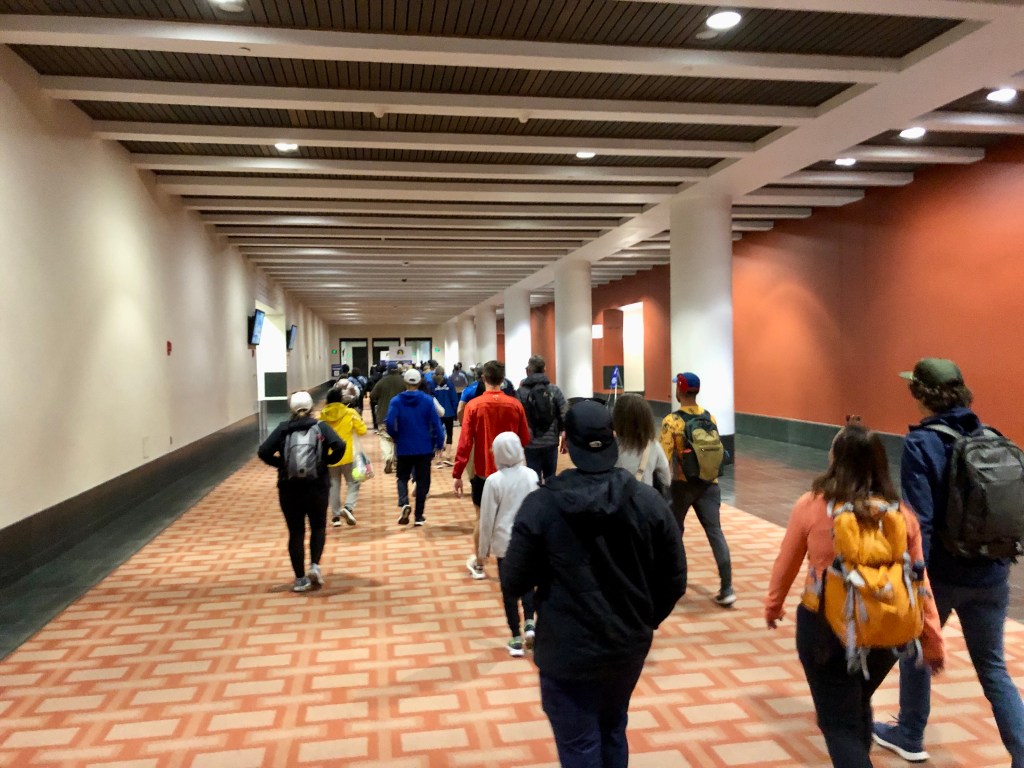 then down another corridor, up more stairs, down more corridors. You get my drift, right? They spread the queue out and control the numbers in the expo by holding you out in the hall and corridors. That said, you don’t stop moving, you are always progressing forward.