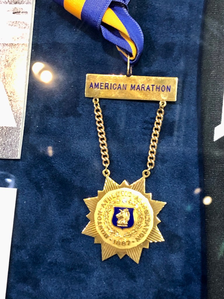 One thing I liked about the Boston Expo last year and again this year was the section showcasing some of the Boston Marathon historic memorabilia, such as the medal from the very first marathon in 1887. Back then, it wasn’t called the Boston Marathon, it was the American Marathon. That was because it was the only marathon in America at that time.