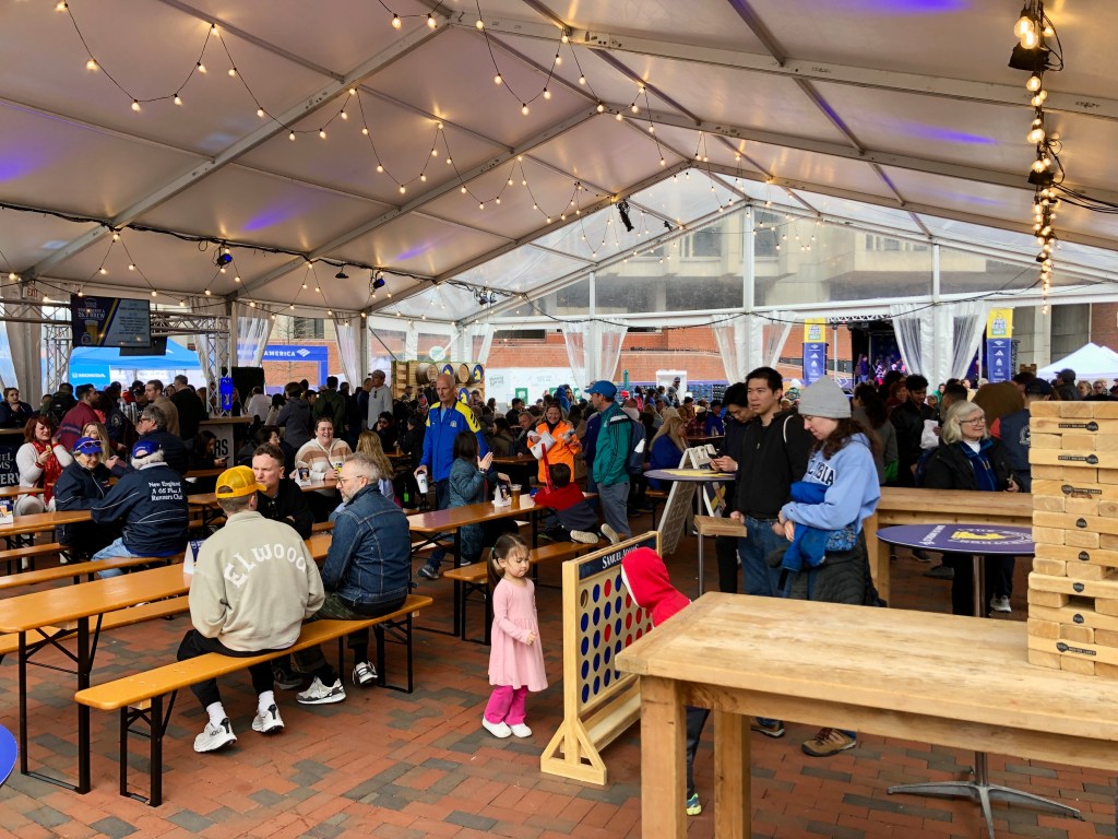 By the time I got there, it was like I had gone to a different country. It was warm, calm, and sunny when I was at the finish line. Now at the Fan Fest, the wind was blowing a gale, and it was cold and pouring rain. That meant the outdoor stalls and activities were empty, everyone was in the beer tent sheltering. I took a chance during a pause in the rain to go out to the Adidas stall and totally caved in and brought the 2024 Boston Marathon celebration jacket. Yes, I now have three Boston jackets to go with the four New York jackets and one Chicago and Berlin jacket. I am a marketer’s dream.