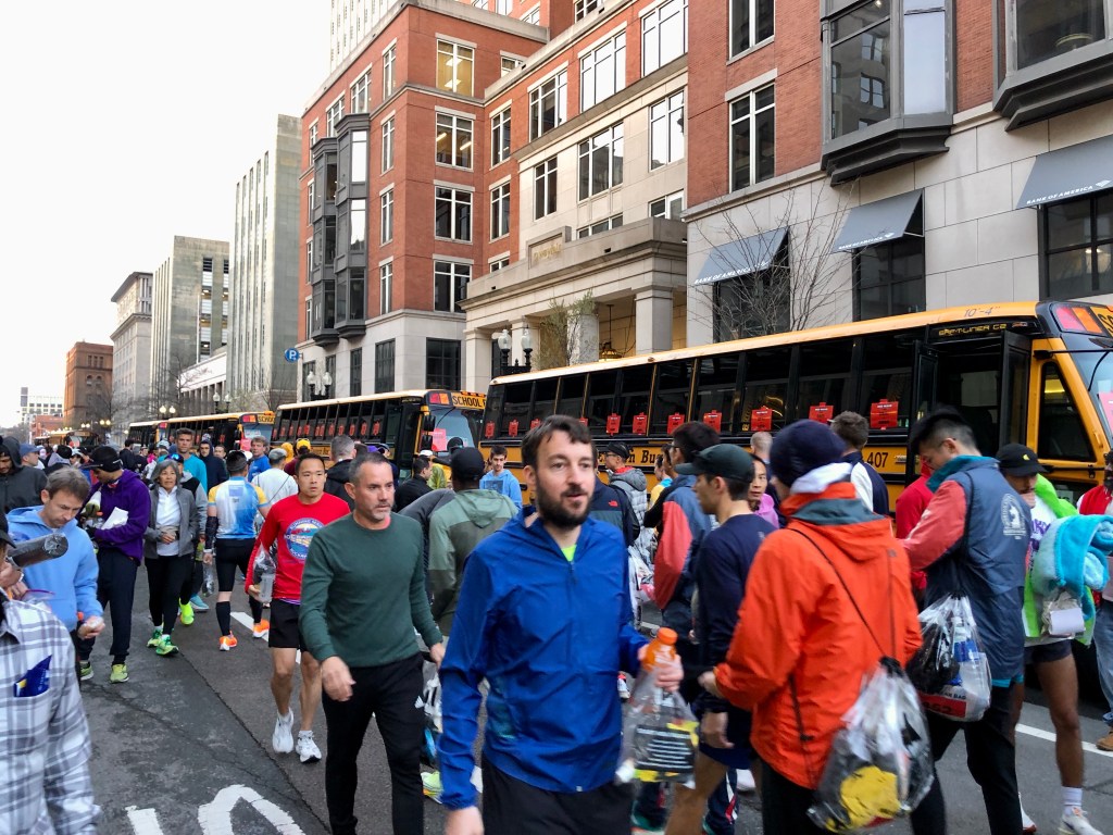 From the gear check buses it’s only a 5min walk back to Boston Common where you board the buses to Hopkinton.