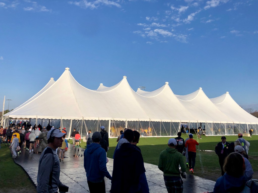 We arrived at Athletes’ Village just before 8am, still over 2 hours until the gun goes off.