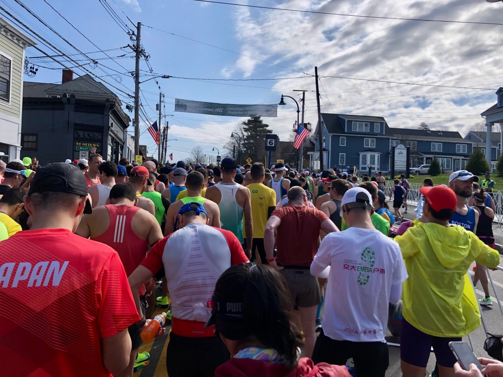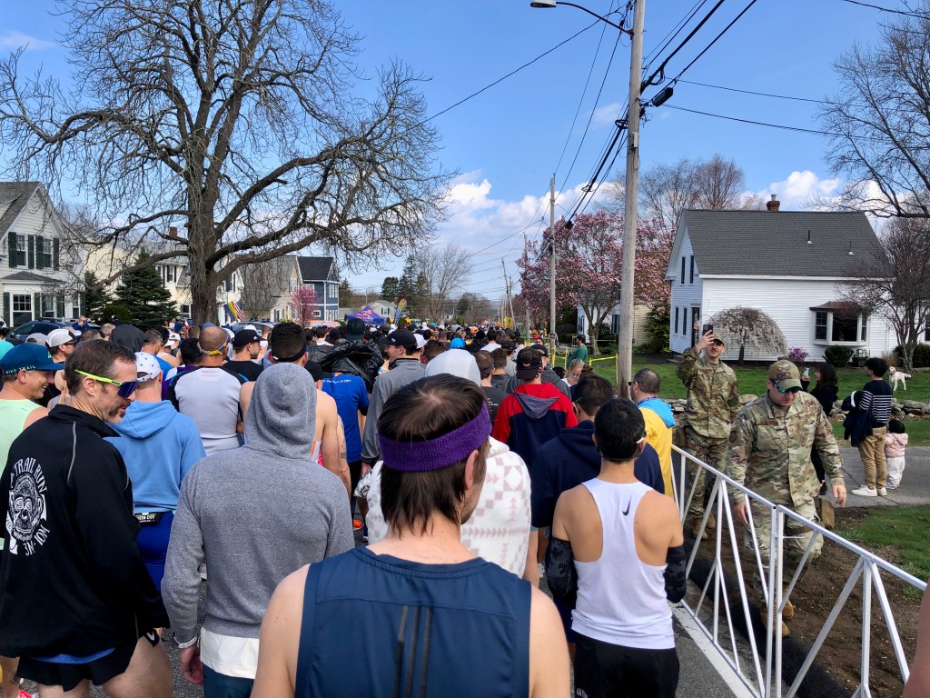 It is a 0.7 mile walk from Hopkinton High to the start line but you have plenty of time. Along the walk to the start there are so many families standing outside of their homes cheering the runners, it really is such a special walk. Feels like you are going into battle and man it felt like I had been in a battle by the time I was back in Boston.