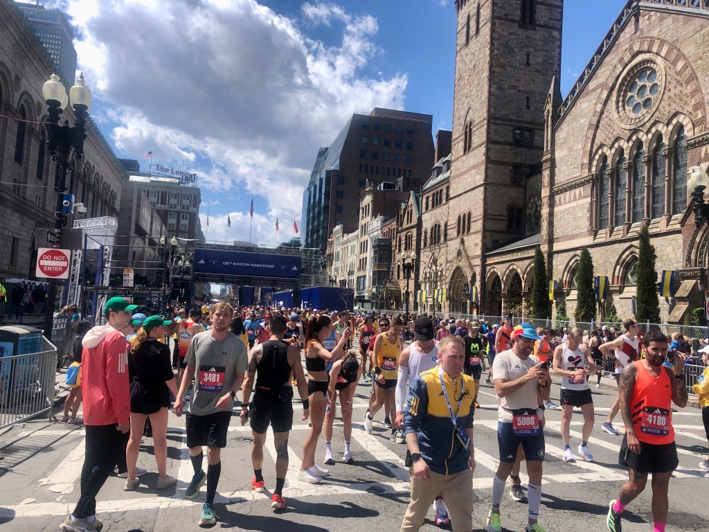 I had just finished my second Boston Marathon. This hadn’t been the race I had hoped in terms of my time but what makes up for that disappointment was the crowds. Boston came out this year and it was epic from start to finish. The crowds and shouts of support at Wellesley, Newton, Heartbreak Hill, Boston College, miles 23-26. They really dragged me to this finish line. I was done and struggling so badly but they lifted me and carried me into Boston today and did so for many more runners before and after me,