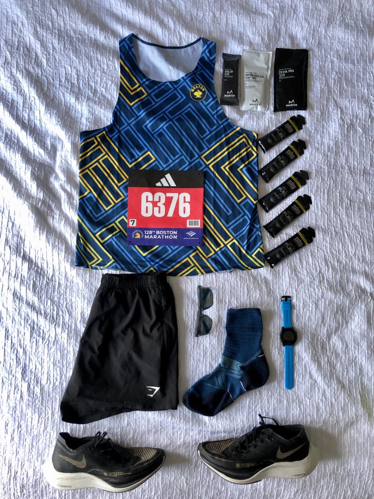 After the Rabbit shakeout and a quick stop off at Lululemon to pick up a gift for my wife, I spent the rest of the afternoon back at the hotel relaxing and getting everything ready for the race and also packing my case as I was due to fly back to the UK after the race. I got my Boston Marathon 2024 Gear out ready and nutrition and hydration all prepared to make race morning less stressful. I like to take a photo of my race gear because I often put things away in the gear check bag then have a stress on race morning double checking I did actually put it in the bag. I do still have that stress that I have forgotten something but the photo does help a little. Plus the race day flat lay gets good likes on the socials and that’s the main thing…