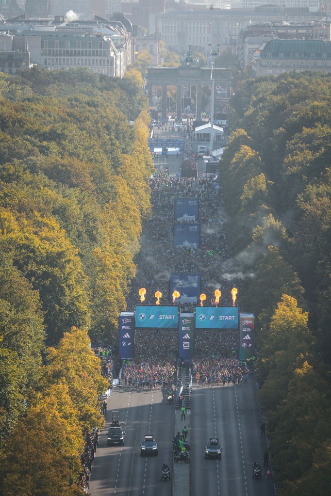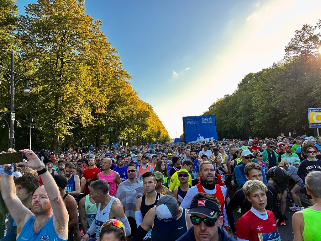 The start of the Berlin Marathon is iconic, all 58,000 runners lined up on the same straight at the same time, it looks amazing and the sight of the thousands of runners heading out on their 26.2 mile journey always gets to me.