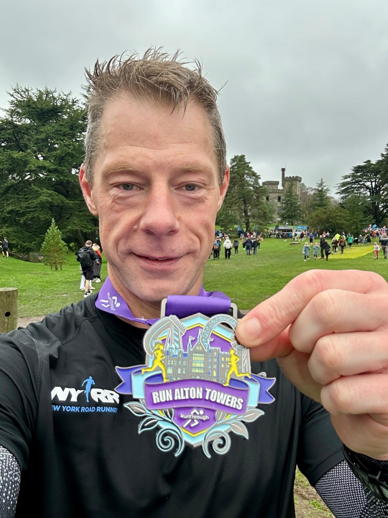 In August, I ran the Tatton Park 10k in 40:56, my slowest 10k since 2016 and with a few months of running under my belt since then, I would like to think I could go quicker than that here. That being said, Alton Towers isn’t a flat theme park; it’s not short, sharp hills everywhere, and this 10k is packed with ups and downs. Barely any of it is actually flat. Plus, factor in last night we had a big storm hit, which had blown down a lot of trees on the drive to Alton, lots of leaves on the path and sticks everywhere, it was wet underfoot and quite chilly. Let’s just say it wasn’t ideal conditions and not an ideal course for a fast time, but I did say this was about getting back to the fun of running and no time pressure, so let’s just go for it and see what happens.
