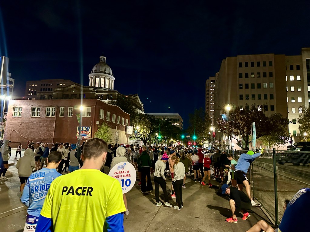 I then moved to The Sam Houston Hotel for the Saturday night, again, logistics were on my mind when I booked here. This hotel is located right by the start line. The start is roughly 10-15min walk from the bag drop at the GRB on race morning. I figured I would stay closer to the start and avoid the stress of bag drop and walking back down here. I was in Corral A and the entrance to Corral A was literally outside the hotel door, so I waited in the warmth of my room until 6:30am and then waited in the lobby until the corrals closed at 6:40am to stay as warm as possible.