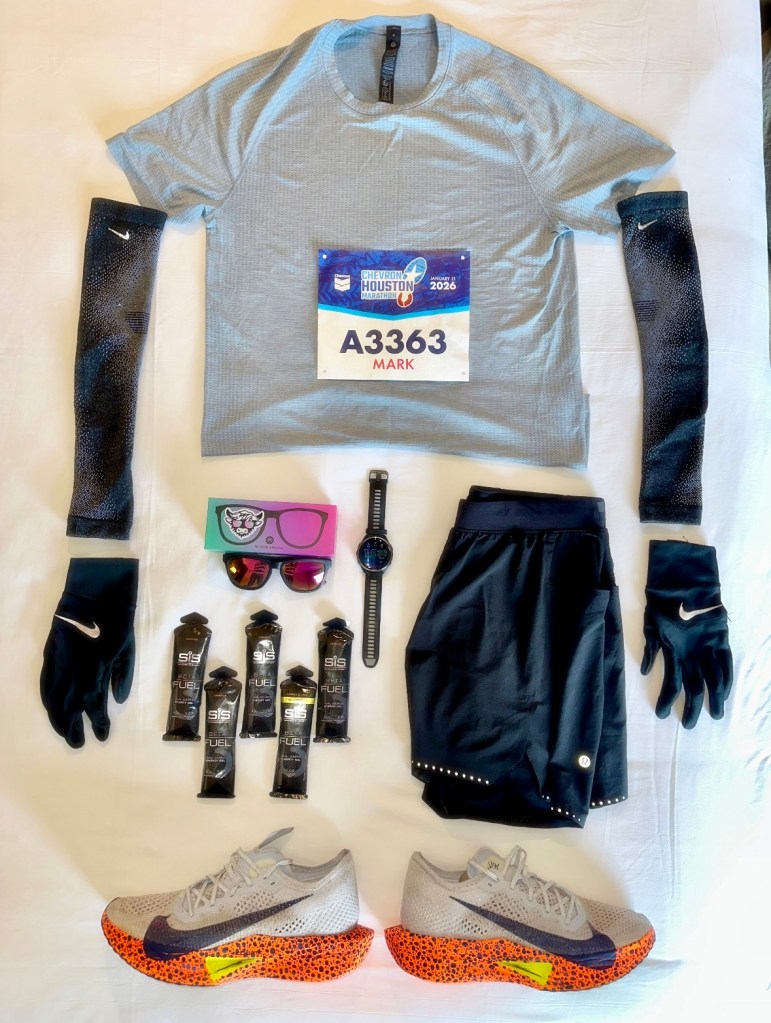 Having just done the 2025 Chicago Marathon in October, I took 3 days off, then went straight into a 12 week training block for Houston. Not ideal, but my training for Chicago was mostly easy runs to build mileage following a 7 and a half month injury layoff, so I figured that 16 week block was a good base build and I would then take these 12 weeks to progress and introduce speed work, etc. There was some logic behind that decision. I ran 3:17 in Chicago, which I was very happy with, but I want to use Houston as a stepping stone to getting back down to sub-3 marathons. My aim here is to run under 3:1,0 taking over 7 mins off Chicago and closer to getting back to where I was.